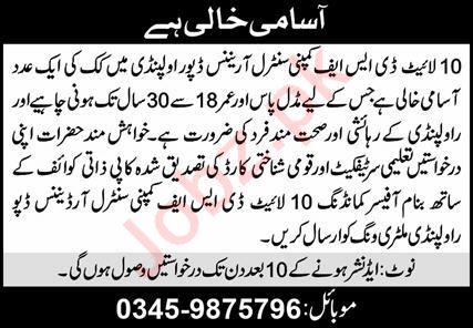 Latest 10 Light Defence Security Force Central Ordinance Army jobs Posts Rawalpindi 2025