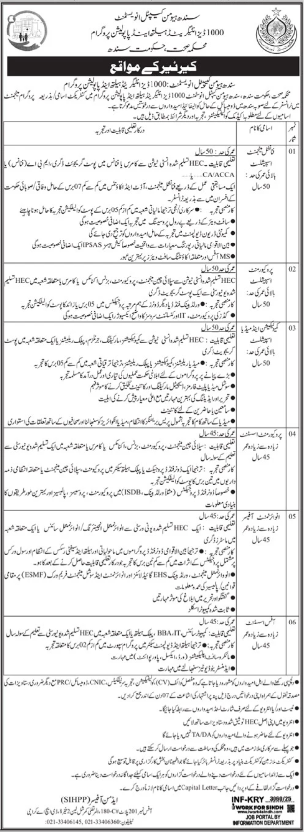 1000 Diseased Health & Population Program Sindh SIHPP Jobs