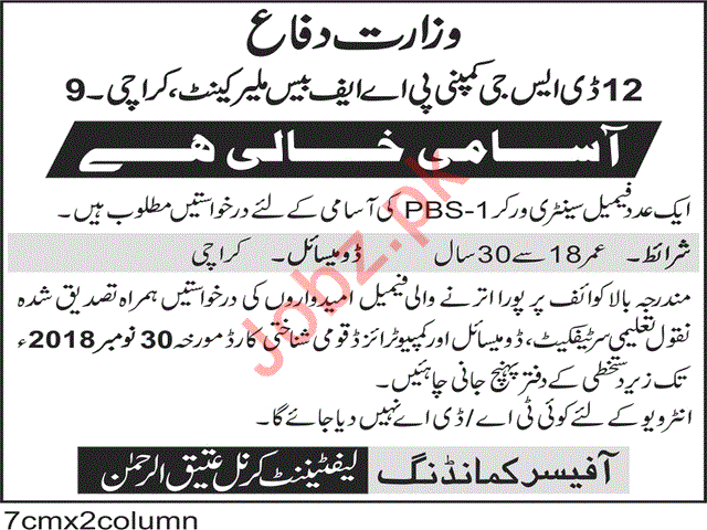 12 DSG Company PAF Base Malir Cantt Karachi Job 2018