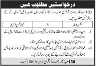130 Medium Rigment Artillery Mess Waiter Jobs 2021