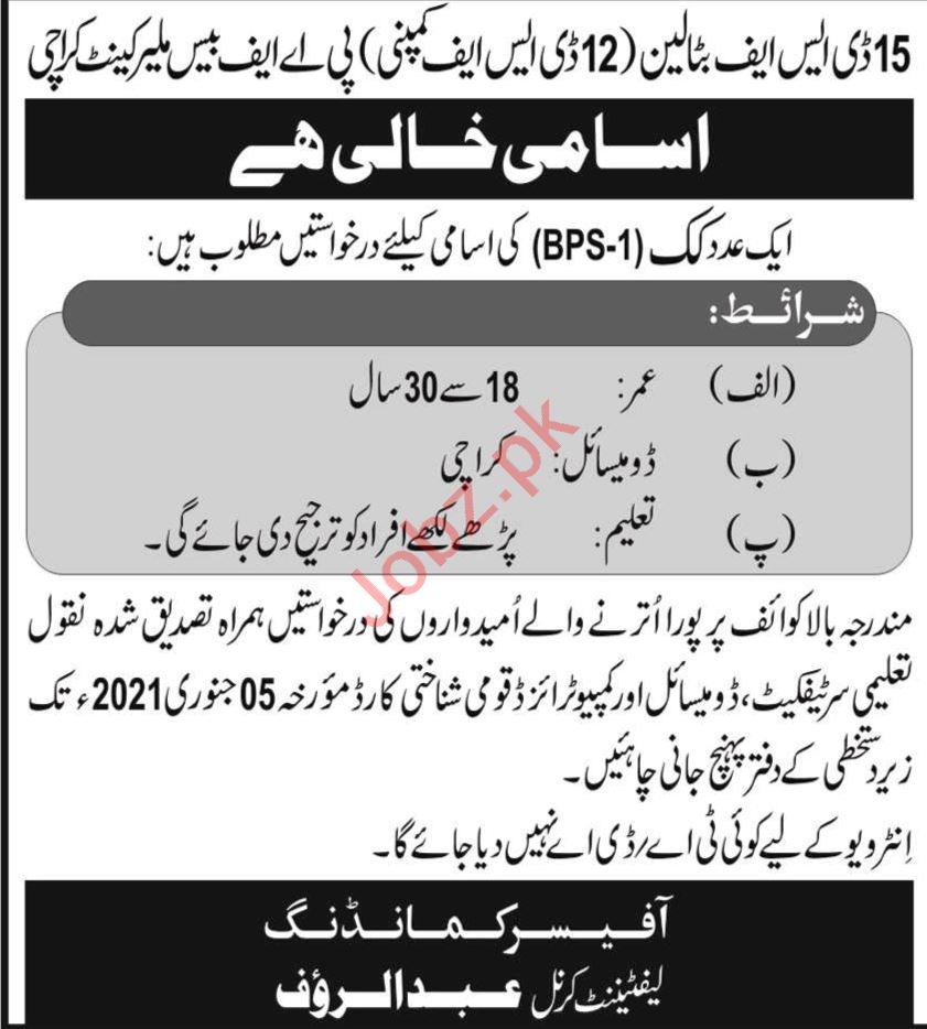 15 DSF Battalion PAF Base Malir Cantt Karachi Jobs 2021