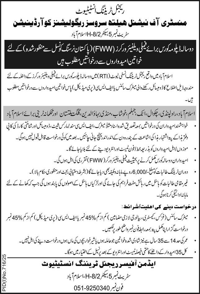 2 Years Diploma Course Admission 2025 open in Ministry of National Health