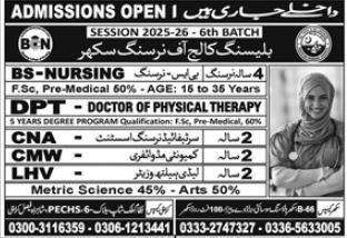 Admissions in Blessing College of Nursing 2025 for 2 Years Diploma Program has been announced. Eligible students can apply for academic admissions 2025 in Blessing College of Nursing Karachi Sindh Pakistan for Science College. Eligible students for fulfilling criteria for admissions in can enroll as per Government admission policy 2025 till closing date. Read newspaper ad for exact details.
