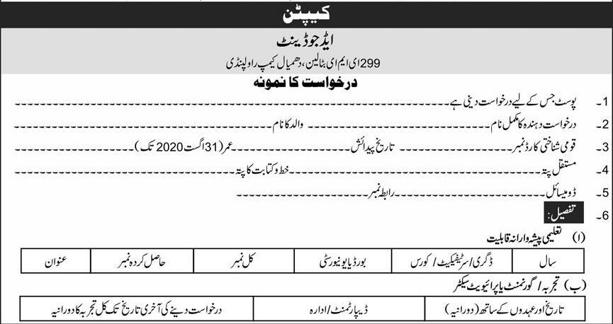 Vacancies in Pakistan Army Advertisement August 2020
