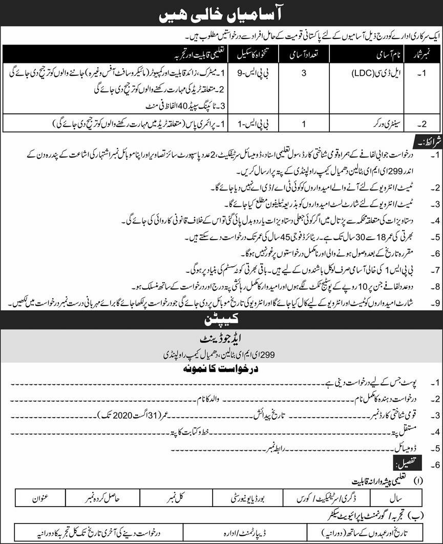 299 EME Battalion Dhamial Camp Rawalpindi Jobs 2020