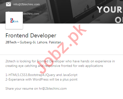 2B Tech Lahore Jobs 2020 for Frontend Developer