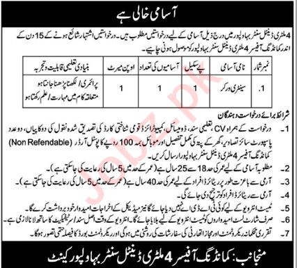 4 Military Dental Centre Bahawalpur Cantt Job 2024