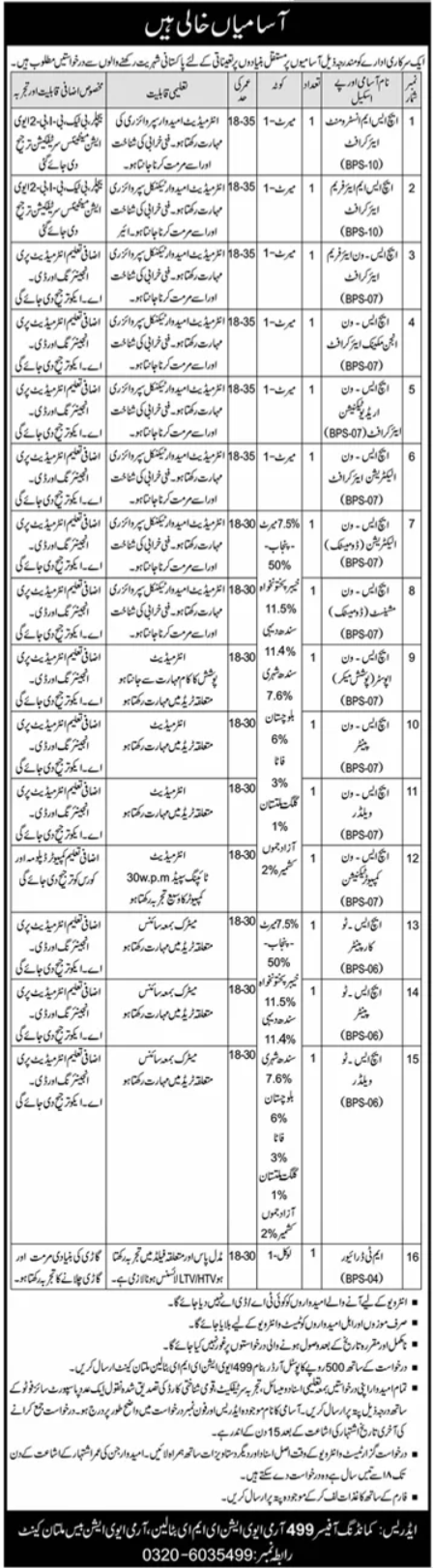 499 Army Aviation EME Battalion Multan Cantt Jobs 2025