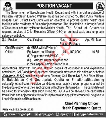 50 Bed Public Welfare Hospital Sui Jobs 2020 for CEO