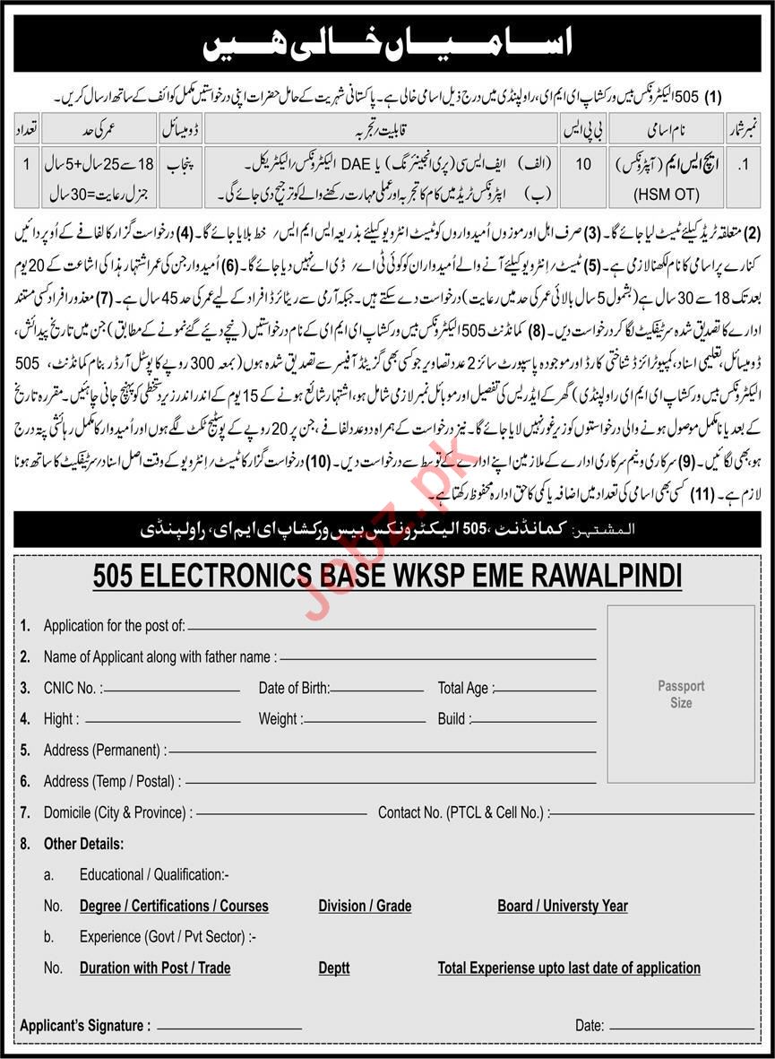 Latest 505 Electronics Base Workshop EME Engineering Posts Rawalpindi 2025