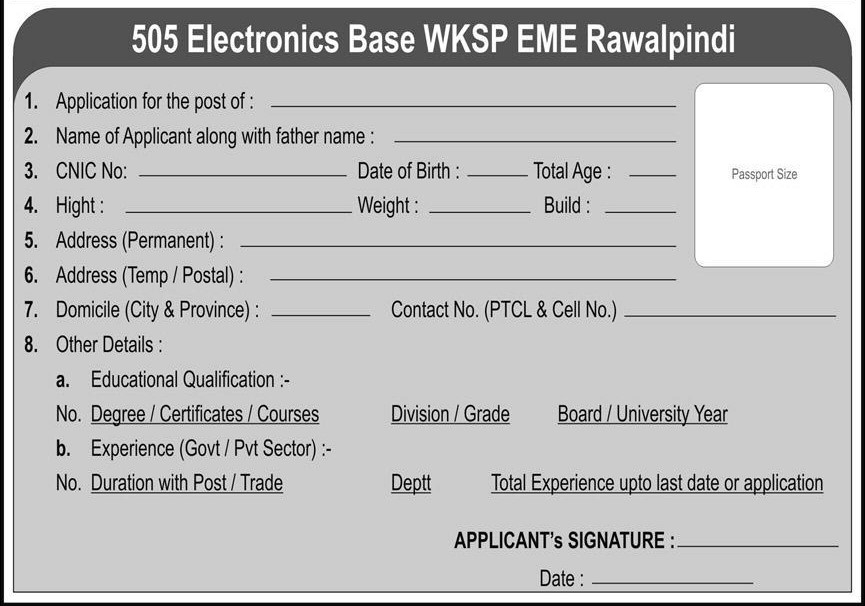 Latest 505 Electronics Base Workshop EME Army jobs Posts Rawalpindi 2025