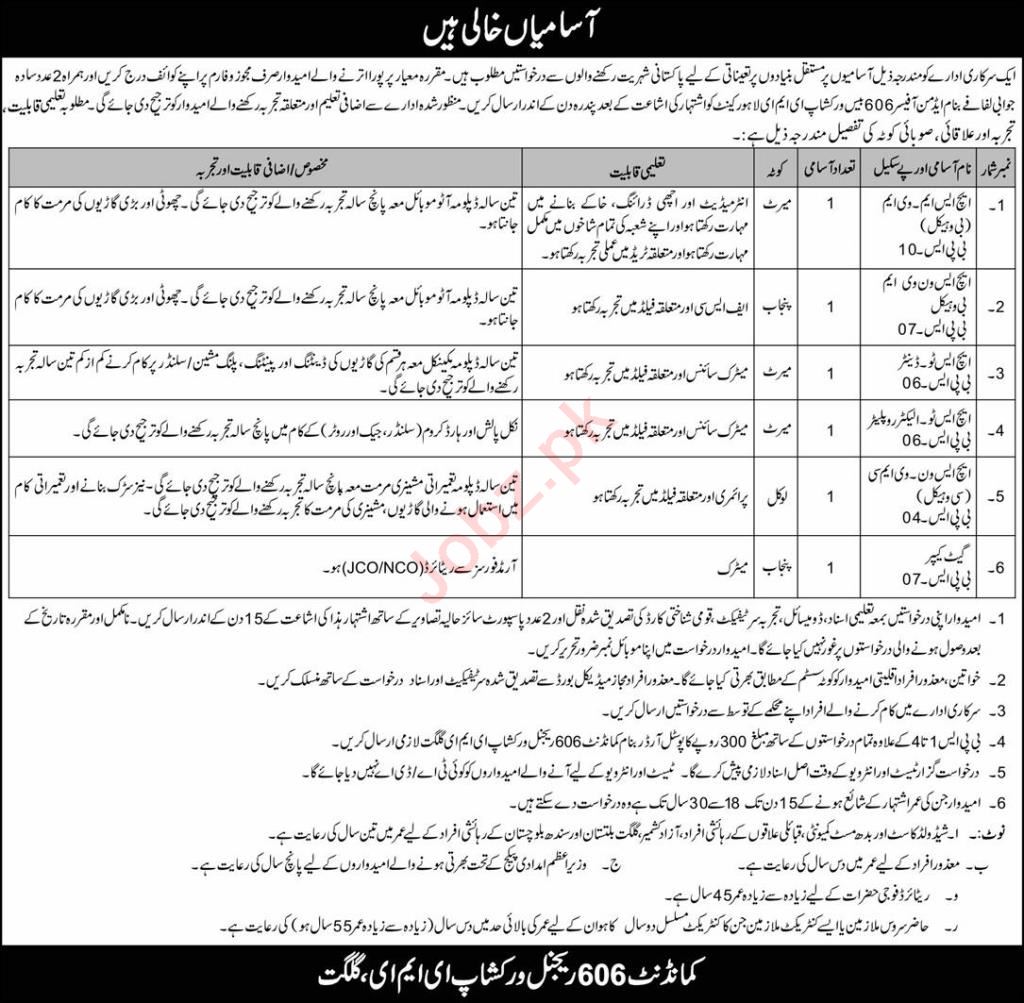 606 Regional Workshop EME Gilgit, Pakistan Army is looking for candidates for following posts as per job advertisement published in daily Express Newspaper of June 25, 2023 for location Gilgit, gilgit Gilgit Baltistan Pakistan: