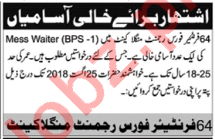 64 Frontier Force Regiment Mangla Cantt Mess Waiter Jobs