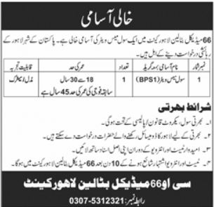 66 Medical Battalion Lahore Cantt Jobs 2025