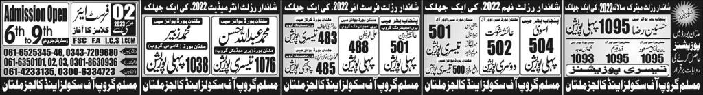 Muslim Group Of Schools & Colleges admissions 2023 for 6th Class, 7th Class, 8th Class, 9th Class, FSc, FA, ICS, ICom has been announced. Students who want to take admissions in Muslim Group Of Schools & Colleges Multan Punjab Pakistan for academic year 2023 to continue education in Science College can apply. Eligible candidates for admissions in Intermediate, ICS, I.com and Middle can apply as per Private institute criteria and before closing date 15 May 2023 after reading advertisement online. Read newspaper ad for exact details.