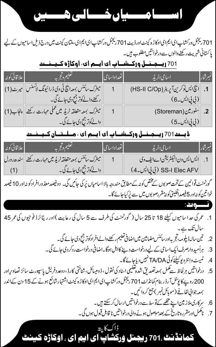 How to Apply on 701 Regional Workshop EME Job Advertisement
