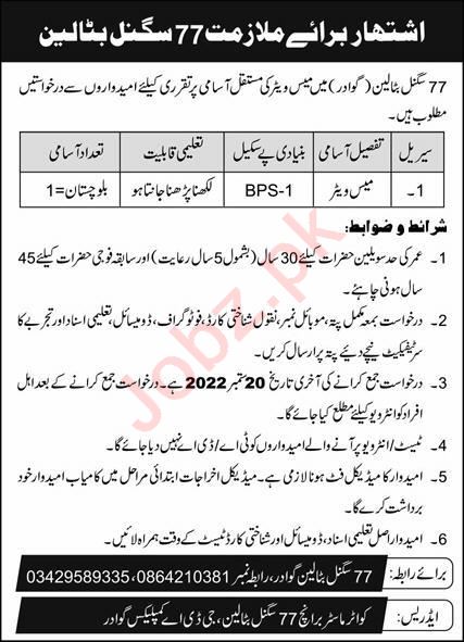 77 Signal Battalion Jobs 2022 in Gwadar