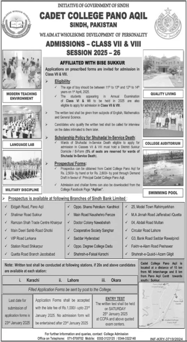 7th and 8th Class admissions at Cadet College Pano Aqil