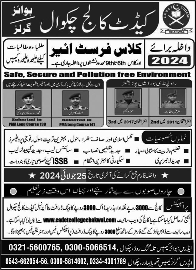 8th and 9th Classes admissions at Cadet College Chakwal