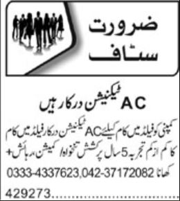 Vacant posts including field worker and ac technician are announced in Factory Lahore, lahore Punjab Pakistan as per 28 April 2025 advertisement in daily Roznama 92 News Newspaper. Candidates with Intermediate, Middle and Matric etc. educational background will be preferred.