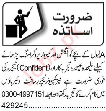 Private School Lahore, lahore Punjab Pakistan invites applications from eligible candidates for the post of computer teacher, teacher, english teacher and female teacher as per advertisement of September 4, 2023 published in daily Roznama 92 News Newspaper. Candidates with Bachelor, Master and MS etc. educational background will be preferred.