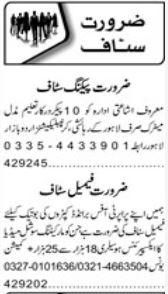 Private Company Multan, multan Punjab Pakistan invites applications from eligible candidates for the post of social media expert, packing staff, marketing manager and packer as per advertisement of August 28, 2023 published in daily Roznama 92 News Newspaper. Candidates with Middle, Matric, Bachelor and Intermediate etc. educational background will be preferred.