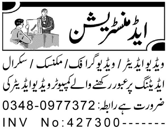 Latest Computer jobs and others Classifieds jobs in Private Company closing date is around January 28, 2024, see exact from ad. Read complete ad online to know how to apply on latest Private Company job opportunities. Video Editing and Graphic Art skills may beneficial for these Private Company jobs.