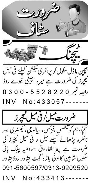 Private School is looking for candidates for following posts as per job advertisement published in daily Aaj Newspaper of August 12, 2024 for location Peshawar, peshawar Khyber Pakhtunkhwa KPK Pakistan: