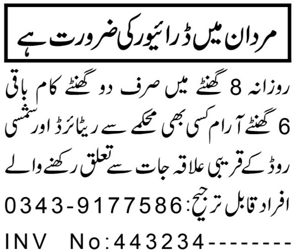 Aaj Sunday Classified Ads 13 July 2025 For House Driver