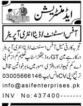 Private Company Peshawar, peshawar Khyber Pakhtunkhwa KPK Pakistan invites applications from eligible candidates for the post of data entry operator and office assistant as per advertisement of December 16, 2024 published in daily Aaj Newspaper. Educational qualifications required Bachelor and BA etc.