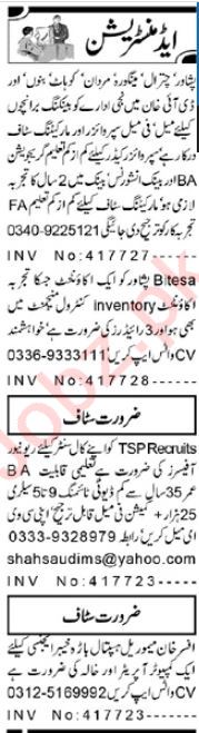 Private Company Peshawar, peshawar Khyber Pakhtunkhwa KPK Pakistan invites applications from eligible candidates for the post of computer operator, khala, revenue officer, supervisor, accountant and marketing staff as per advertisement of January 16, 2023 published in daily Aaj Newspaper. Preferred Education is Matric, Middle, Bachelor and Intermediate etc.