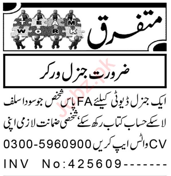 Vacant posts including general worker are announced in Private Company Peshawar, peshawar Khyber Pakhtunkhwa KPK Pakistan as per 16 October 2023 advertisement in daily Aaj Newspaper. Intermediate etc. educational qualification will be preferred.