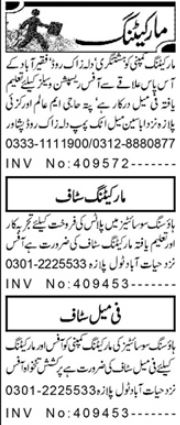 Aaj Sunday Classified Ads 19 June 2022 for Marketing Staff