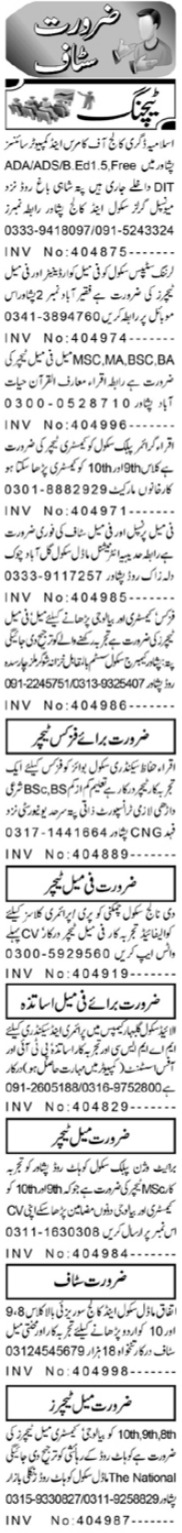 Private School Peshawar, peshawar Khyber Pakhtunkhwa KPK Pakistan invites applications from eligible candidates for the post of computer science teacher, female coordinator, office assistant, teacher, physics teacher, primary school teacher, secondary teacher, female teacher, urdu teacher, pti, chemistry teacher, female physics teacher, female principal and biology teacher as per advertisement of February 20, 2022 published in daily Aaj Newspaper. Bachelor and Master etc. educational qualification will be preferred.