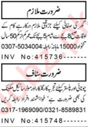 Private Company jobs advertisement dated about 21 November 2022 in daily Aaj Newspaper invites application for the vacant post of cleaner, mechanic, house worker and mason in Peshawar, peshawar Khyber Pakhtunkhwa KPK Pakistan. Educational qualifications required Middle, Primary and Matric etc.