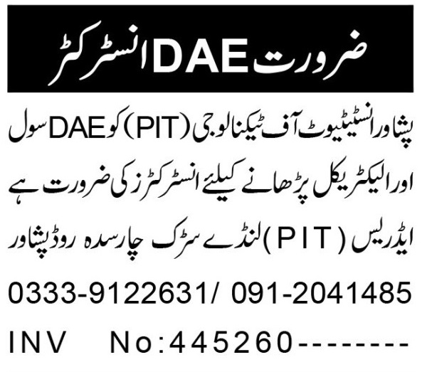 Peshawar Institute of Technology PIT jobs advertisement dated about 22 September 2025 in daily Aaj Newspaper invites application for the vacant post of dae instructor and instructor in Charsadda Road Peshawar, peshawar Khyber Pakhtunkhwa KPK Pakistan. Preferred Education is Bachelor, Intermediate and DAE etc.