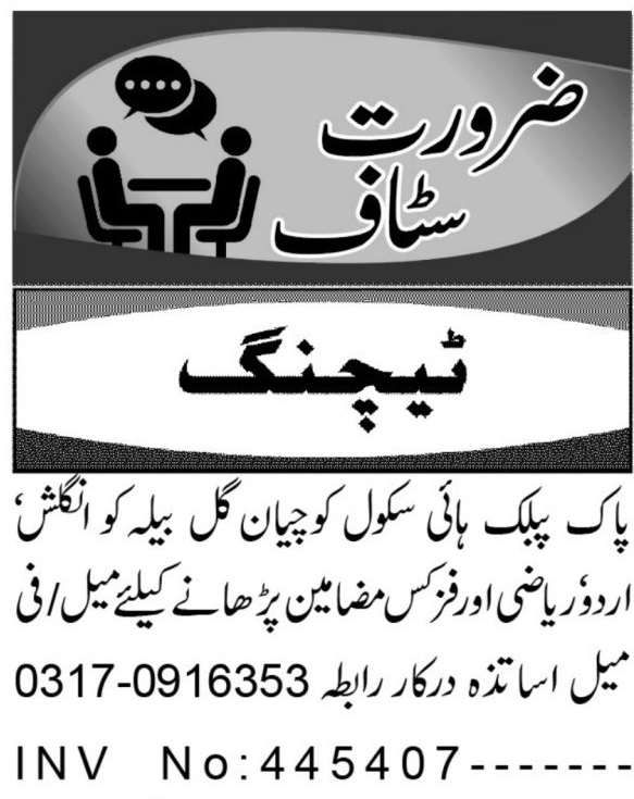 Latest Classifieds jobs in Pakistan Public School in Teaching and others can be applied till 14 October 2025 or as per closing date in newspaper ad. Read complete ad online to know how to apply on latest Pakistan Public School job opportunities.
