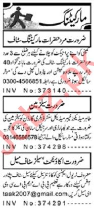 Aaj Sunday Classified Ads 29 Dec 2019 for Marketing Staff