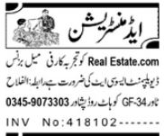 Aaj Sunday Classified Ads 29 Jan 2023 for Administration