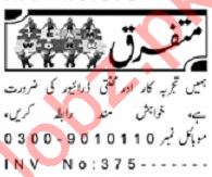 Apply as per details in job advertisement. Login to view further details of how to apply via https://www.jobz.pk online.