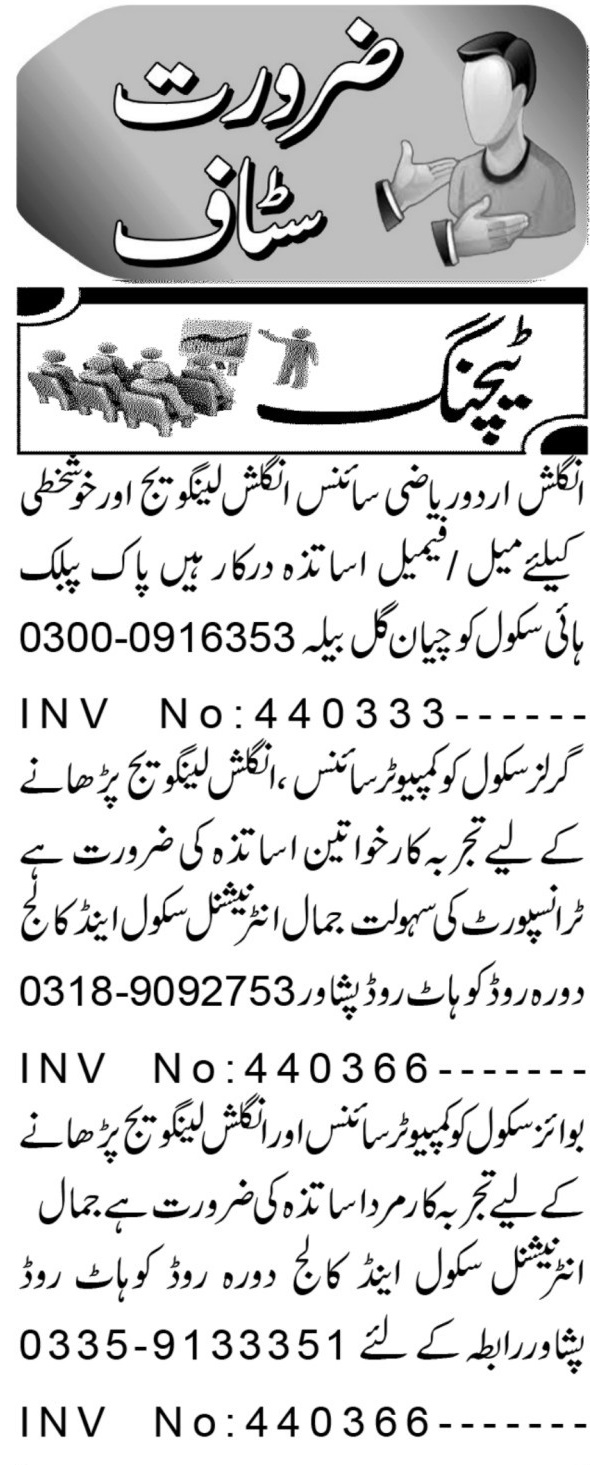 Private School is looking for candidates for following posts as per job advertisement published in daily Aaj Newspaper of April 7, 2025 for location Kohat Road Peshawar, peshawar Khyber Pakhtunkhwa KPK Pakistan: