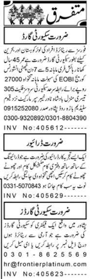 Private Company jobs advertisement dated about 7 March 2022 in daily Aaj Newspaper invites application for the vacant post of security guard, security staff, driver, ltv driver and htv driver in Peshawar, peshawar Khyber Pakhtunkhwa KPK Pakistan. Educational qualifications required Matric, Middle and Intermediate etc.
