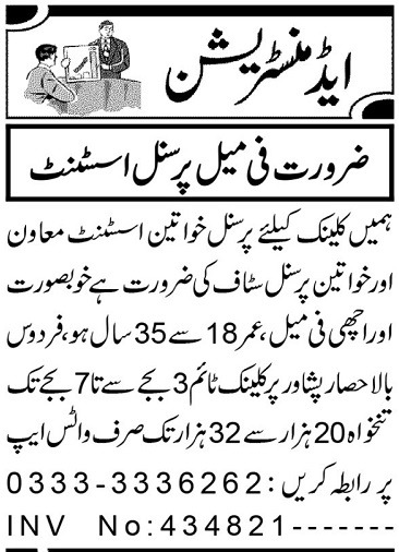 Hospital Clinic invites applications for job positions advertised in daily Aaj dated 7 October 2024 for following vacancies in Peshawar, peshawar Khyber Pakhtunkhwa KPK Pakistan.