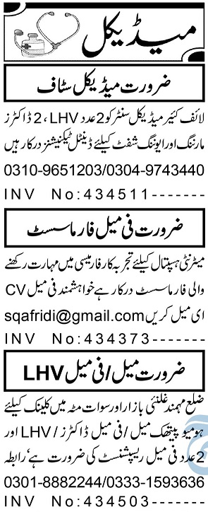 Hospital Clinic is looking for candidates for following posts as per job advertisement published in daily Aaj Newspaper of September 9, 2024 for location Peshawar, peshawar Khyber Pakhtunkhwa KPK Pakistan: