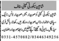 Shaheen Security Company Peshawar Khyber Pakhtunkhwa KPK Pakistan invites applications from eligible candidates for the post of Naib Subedar, Security Guard, Subedar Major and Subedar as per advertisement of January 9, 2022 published in daily Mashriq Newspaper. Candidates with Middle and Matric etc. educational background will be preferred.