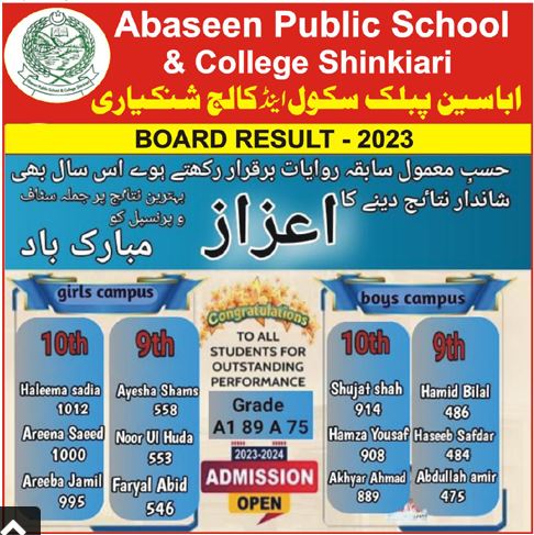 Admissions in Abaseen Public School & College 2023 for Matric, 9th Class, 10 Class has been announced. Students who want to take admissions in Abaseen Public School & College Mansehra Khyber Pakhtunkhwa KPK Pakistan for academic year 2023 to continue education in Science School can apply. Students for admissions in Matric & criteria can apply as per Private institute admission policy 2023 before closing date September 18, 2023 as per advertisement. Read newspaper ad for exact details.