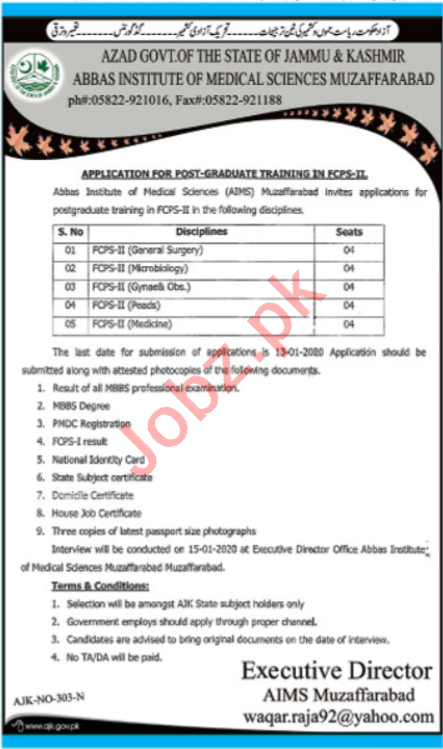 Abbas Institute of Medical Sciences AIMS Muzaffarabad Jobs