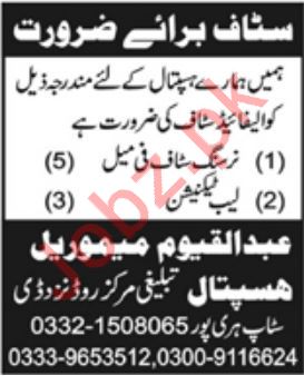 Abdul Qayyum Memorial Hospital Jobs For Haripur KPK