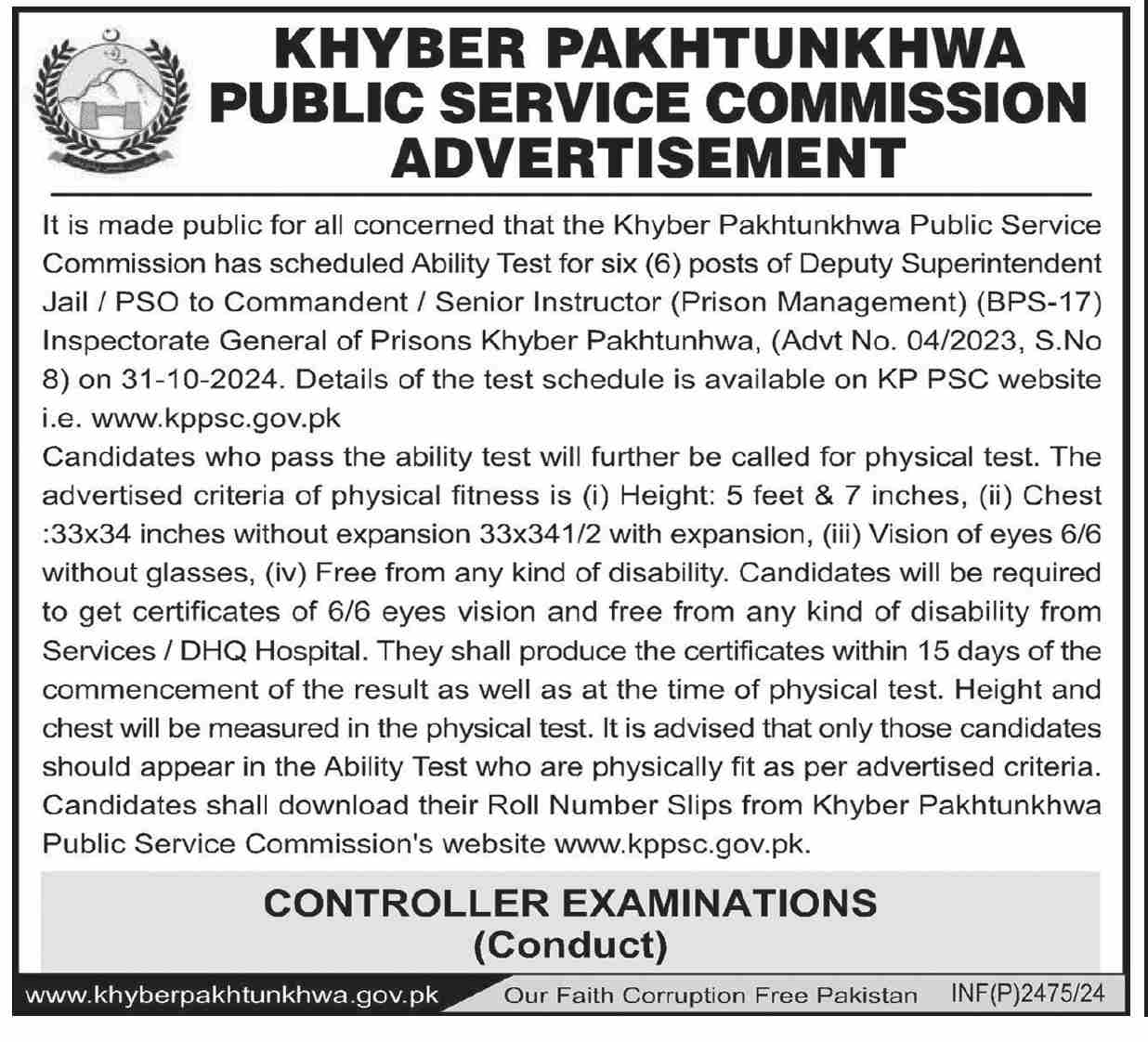 Khyber Pakhtunkhwa Public Service Commission KPPSC is looking for candidates for following posts as per job advertisement published in daily Dawn Newspaper of September 21, 2024 for location Peshawar, peshawar Khyber Pakhtunkhwa KPK Pakistan: