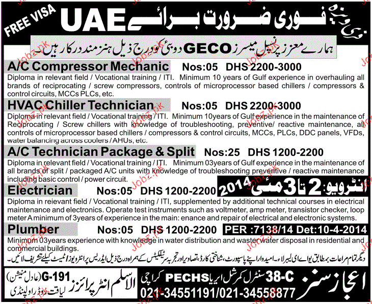 AC / Compressors Mechanics, Chiller Technicians Wanted